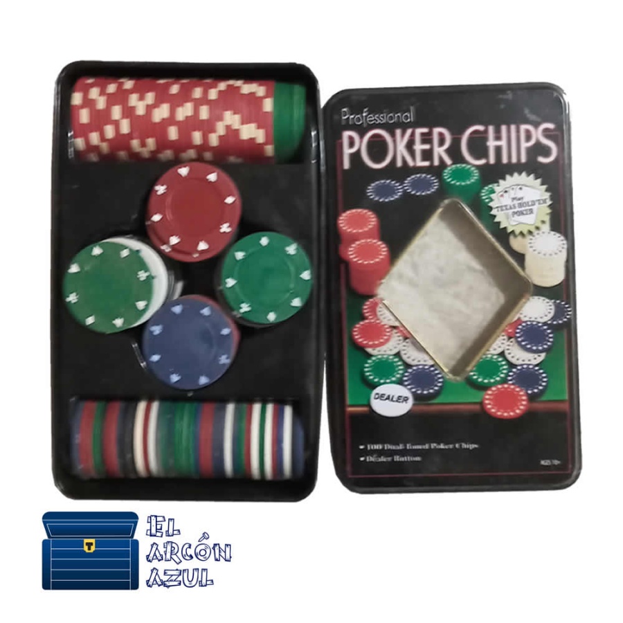 Fichas de póker, 121 unidades en caja de chapa usadas