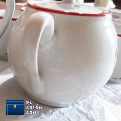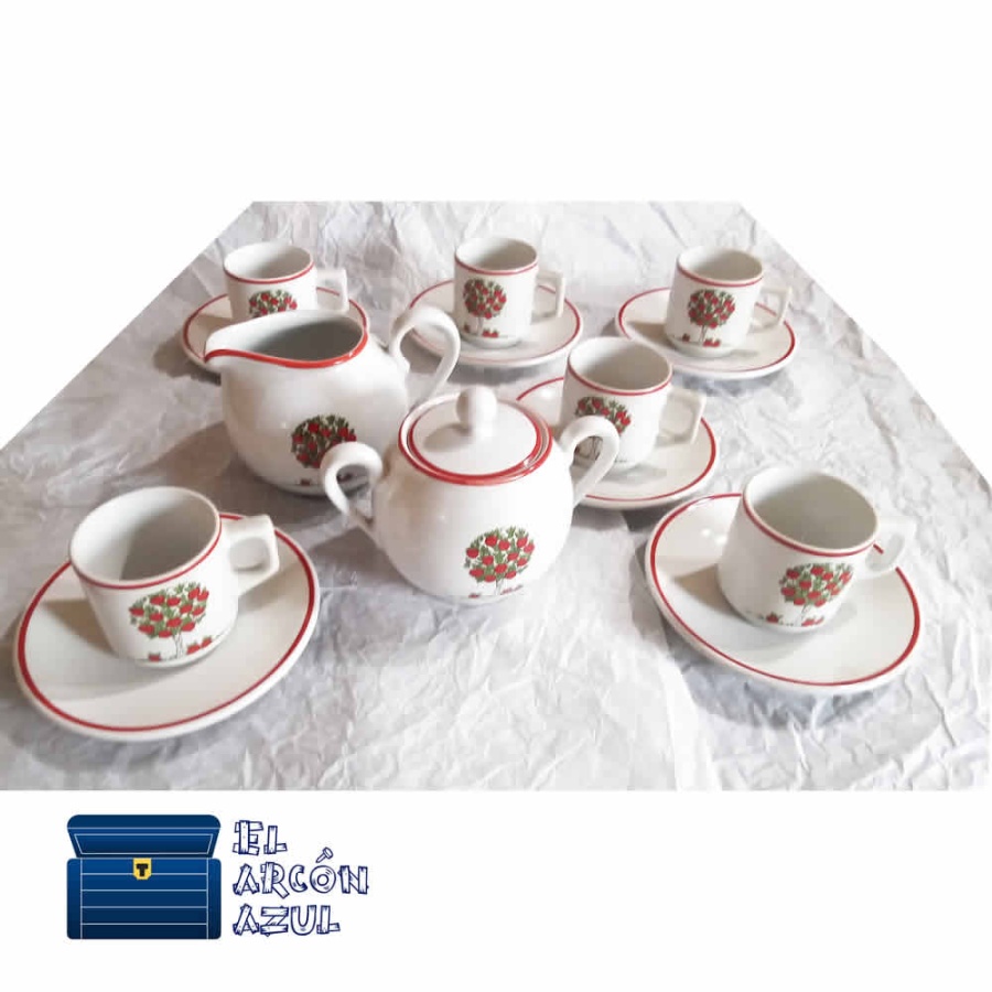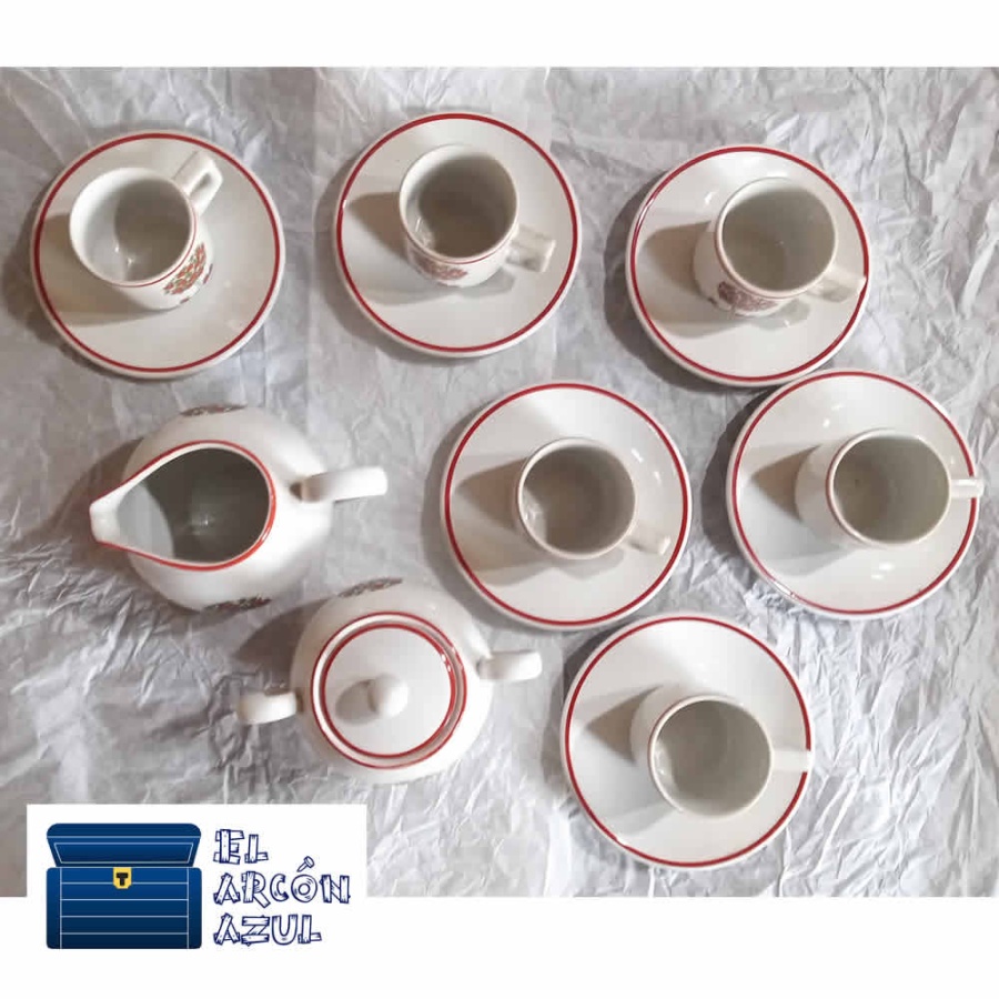 Juego de café en buen estado. 6 pocillos con sus platos, lechera y azucarera. Esta última tiene un asa pegada. Detalle en las fotos. Lo podés ver sin compromiso de compra en Balvanera, Av. Jujuy al 500. Contactame: 11-6474-8484.